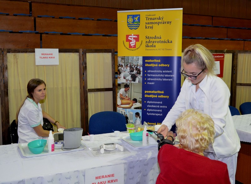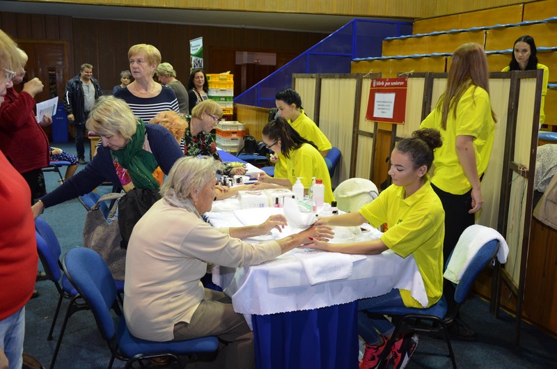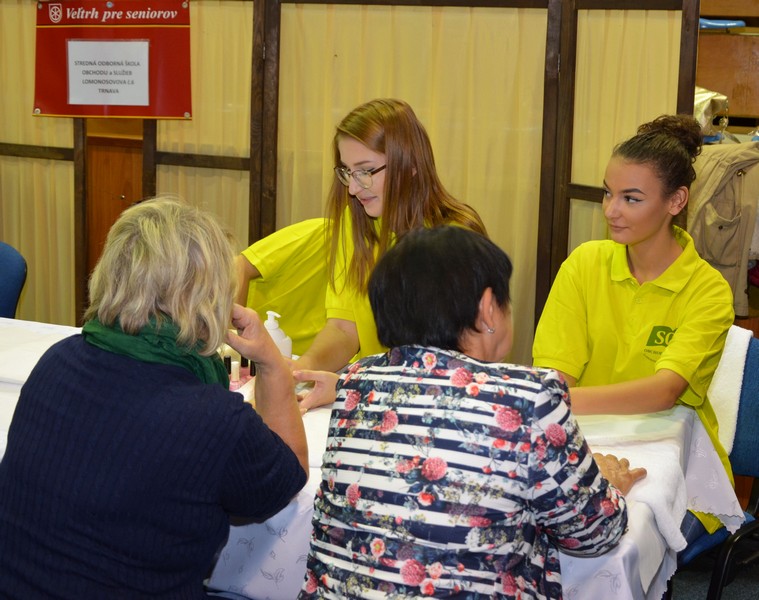 V dňoch 24. a 25. októbra 2018 sa konal v Mestskej športovej hale jubilejný 10.ročník Veľtrhu pre seniorov s programom pestrým ako októbrové lístie. Seniorov čakali dva dni plné dobrej nálady, spevu, tanca a všakových dobrôt. Po slávnostnom otvorení veľtrhu sa na pódiu striedali rôzne folkové spevácke súbory, ktoré spríjemňovali návštevu seniorov známymi ľudovými skladbami. Naša škola sa prezentovala ponukou rôznych chuťoviek a cukroviniek. Okrem toho sme poskytovali kadernícke a kozmetické služby, o ktoré bol ako vždy veľký záujem .Veľtrh navštívil aj primátor mesta Trnava p. Bročka Peter. Milo nás prekvapil tým, že sa pri nás zastavil, ponúkol sa chuťovkami a odfotil sa s našimi majsterkami.