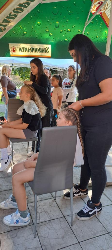 Dňa 20.9.2024 sa žiačky našej školy z odboru kaderník a kozmetik zúčastnili akcie Country hody v Domove sociálnych služieb v Zavare. Kaderníčky zapletali malým návštevníčkam vrkoče a kozmetičky prevádzali masáž rúr návštevníkom aj klientom z DSS.